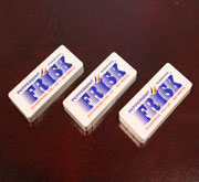 ミント風味の清涼菓子の王様、フリスク。日本にミントタブレットという文化を持ち込んだ、美しい黒船である。現在日本では、ペパーミント、スペアミント、ユーカリミント、ライムミント、ベリーミントが発売中。多くのファンが、今日もスーハーする。